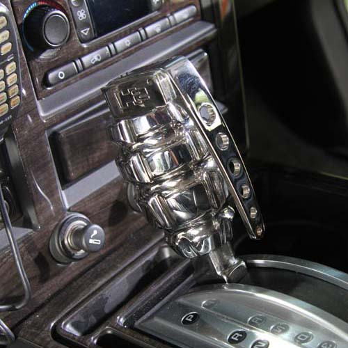 | 內裝部分幾乎都保持原廠奢華的風格,不過排檔桿已改成手榴彈的樣式,充分凸顯Hip-Hop最精髓的改裝風格,也讓筆者想起先前看過的手槍造型排檔桿…。 |