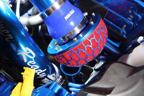 | 套件採用鮮明的藍色塗裝是長明的特色,從車頭水箱罩內的進氣冷卻器就可看出端倪,彷彿就在宣告不要輕易挑釁。 |