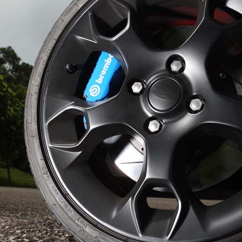 | 車主將原廠17吋輪圈施以黑色塗裝來強化視覺效果,搭配上四活塞卡鉗更能有效提升制動效能。 |
