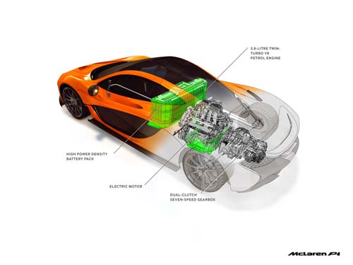 | 雖然引擎採用與MP4-12C相同的3.8升V8雙渦輪引擎,但是藉由重新調整進排氣系統與增壓值後不僅達到737hp/73.4kgm,配合電動馬達輸出更可達916hp。 |