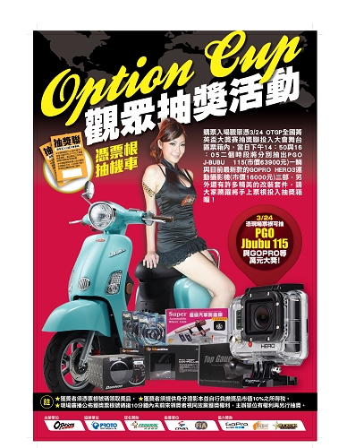 | 本場活動OPTION將延續3/24現場購票觀眾機車萬元大獎抽獎活動,千萬不要錯過!(照片中獎項為3/24活動內容) |