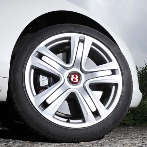 | 外觀採用專屬的紅色展翅廠徽,輪圈中央也同樣有著紅底B字樣徽章,藉此突顯V8與W12的不同之處。 |