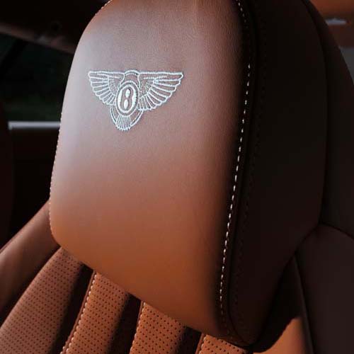| 頭枕上的純手工Bentley廠徽刺繡為選配項目。 |