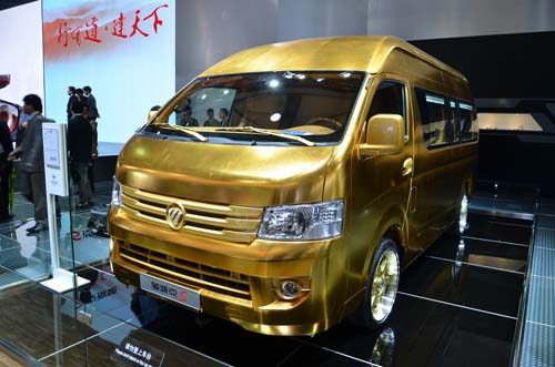 鍍上一層中國人最愛的「黃金」塗裝這樣的把戲果然奏效,連筆者都被它吸引駐足,它不僅擁有貴重的外殼,裡頭還有大型電視、頭等艙總裁座椅、酒吧等,簡直就是部「黃金行宮」。