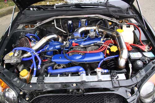 | 有別於GDB車款愛用的2.5L引擎,本車使用以高轉取向為主的STI 2.0L本體,企圖以暴力的高轉表現來彌補車重的缺陷。 |