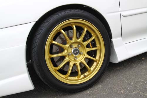 | 215/45/17 RS-R不但便宜,抓地力也相當不錯,非常適合這輛動力不大的GF8使用。 |