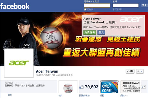 王建民預計6/18將再度先發與洛磯隊對戰,Acer號召全民替王建民加油,可登上Acer Taiwan Facebook,寫下為王建民加油的話語,有機會抽到王建民親筆簽名球。詳情可參閱https://www.facebook.com/AcerTaiwan。