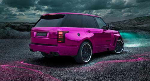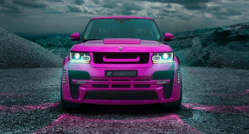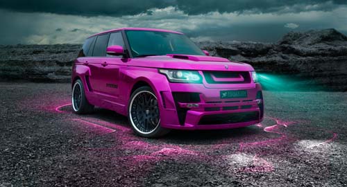 相當懂得市場行銷並創造話題的德國改裝廠Hamann,一直深信重量與動力之間的關聯性,為了持續突破既有的設計美學概念,近期更是首度大膽以Range Rover為基礎,並以粉色系鏡面外觀作為進化的首部曲,為此Hamann特別命名為MYSTRE。為了有效提供MYSTRE最為搶眼的外觀美學,除了媲美鏡面的粉色系車色,採用碳纖維材質打造的寬體空力套件不僅將兩側寬度延伸80mm,在重新設計的前保桿造型之下更是巧妙將LED日行燈整合於兩側,而大面積的進氣壩也有助於5.0升V8增壓引擎所需的散熱,而實際上看起來也於年輕運動化的Evoque有極為相似之處。