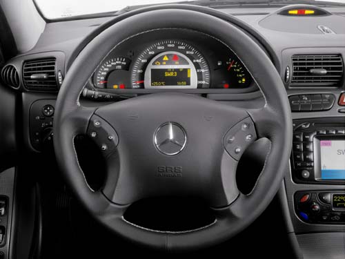 | C32 AMG首度搭載全新5速自動變速箱,駕駛只需輕壓按鈕,便可進行手動換檔。 |