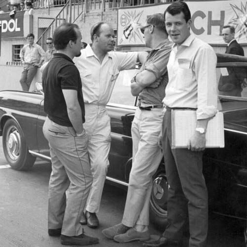 | Manfred Schiek(右二)在1965年駕駛Aufrecht和Melcher所調校的300 SE參加德國房車錦標賽,並拿下年度冠軍寶座。 |