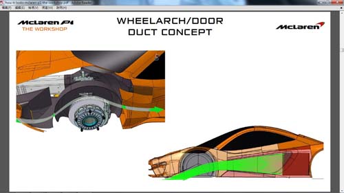 隨著活動開始,行銷主管說明此次活動將分成三個階段,How it Looks、How it Works、How it Feels,所有與P1計畫相關的主管、設計師與工程師均會出席,一一說明P1所採用的技術與細節。負責P1的設計總監Dan Parry-Williams點出了這部車在構思初期的概念,就是以賽道為出發點,還有McLaren在F1場上的輝煌歷史與技術,加上追求完美的態度來製作P1。我想,大家都清楚,這些只是開場的華麗詞彙,後頭的技術講解才是重點,不過在這些言詞中,有一句話吸引了我,就是Everything for a reason──凡事皆由有其原因,這句話也引領出P1外型設計與空氣力學的一切源由。