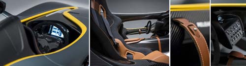 | 皮革內裝把手、一貫的按鈕式自手排變速箱介面與充滿賽車科技的碳纖維方 向盤內裝,一切搭配的是如此的巧妙。 |