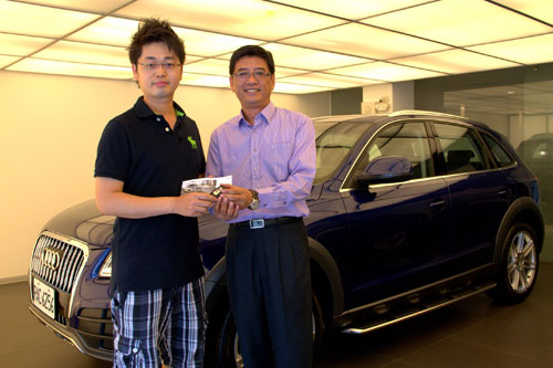 台灣奧迪汽車於3~5月所推出為期二個月的Audi「老朋友,新禮遇」尊榮禮遇服務,在廣大車主朋友的熱情支持下圓滿落幕,而活動期間舉辦的幸運抽獎活動不但吸引車主們踴躍參加之外,也於日前正式公佈幸運得主的名單,由Audi中山terminal旗艦館的忠實客戶吳先生,獲得免費試駕Audi Q5豪華運動休旅車三個月的超級大獎,在接下來三個月的試駕期間,吳先生除了將可以盡情體驗Audi Q5豪華休旅車所帶來的豐富駕駛樂趣,同時也能享受到Audi Q5的全方位休旅機能,更深入感受四環品牌精湛的造車工藝!