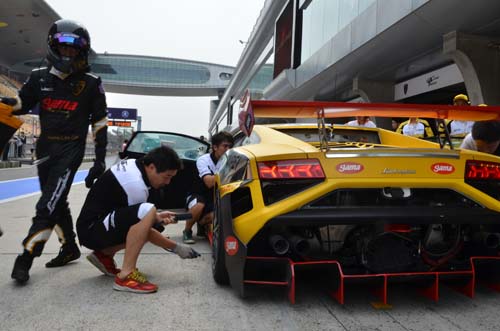 連續辦了五年的Lamborghini Blancpain Super Trofeo今年選擇中國上海作為亞洲區賽事的首站,在驚天動地的渦輪引擎運轉聲響中,一部部Gallardo蓄勢待發的正在各整備區中作最後微調,如果不是親臨現場,你永遠不會知道20部LP570-4同時間空檔拉轉是多麼的嚇人,不過我們還是有幸帶領著大家來到這個做為F1賽事舉辦場地的知名賽車場中,親眼目睹多支隊伍在場上廝殺的精采好戲。比起去年第一次在亞洲地區開啟該賽事的鄂爾多斯賽車場,上海國際賽車場少了詭譎多變的地形和氣候,彎道較少只有16個,直線賽道變得更長,讓參賽車輛最高可狂飆到327km/h的極速,對於車手來說,這應是個可以盡情發揮小牛極限的最佳場所。