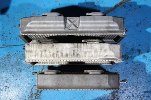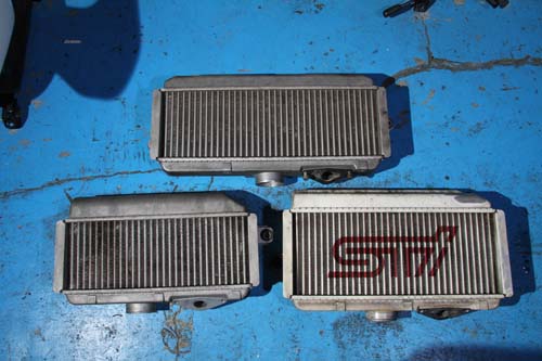 | 圖中上方的為GRB/GVB SGI車款的原廠中冷器,與下方GDB WRX或STI的原廠中 冷器都大上許多,是目前GC/GF車系流用的最佳選擇。 |