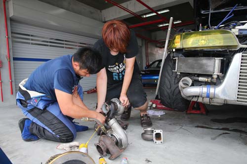 | 由於3SGTE引擎突然發生故障,因此南晃車隊王建民(40號)立即現場進行更換以爭取更多下場練習時間。 |