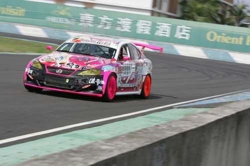 | 具痛車風格代表作之一的GMS特波許智為(32號)除了要應付競爭對手的夾擊之外,面對大鵬灣的高溫氣候更是影響其性能輸出的關鍵。 |