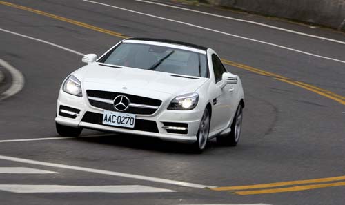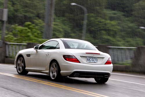 試車當天原本欲前往縣道106乙往石碇實際路測,主要是因為該路段人車稀少且中低速彎道兼具,不過出發後卻不巧遭逢午後雷陣雨的打擾,轉而前往全程路途較短的南深路體驗。由於往南港方向的路面狀況不錯,輪胎的抓地力剛好可以有效發揮。試駕的這部SLK200由於加裝了AMG的跑車式懸吊,而且配備了前輪225/40R18、後輪245/35R18的AMG 5輻式輕合金輪圈,雖然舒適性可能因此略為減低,但也因此於行駛時感受到不錯的路感回饋,進出彎時也明顯能夠有著更為犀利的轉向動作,操駕時車頭也沒有太大的慣性反應。