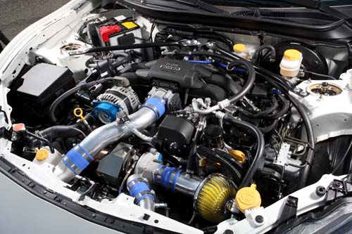搭配GReddy Scion FR-S專用渦輪套件組,以代號T518Z俗稱5號半渦輪為主體,3500 rpm渦輪壓力全峰值設定,電腦供油調校方面,特別請來改裝電腦調校達人張大庭操刀,以Ecu Tek直接對應原廠電腦直寫,不需外掛任何繁雜元件,以Ecu Tek能進行的供油參數調整範圍來看,直接燃油噴射量、燃油控制、點火順序、爆震抑制、進、排氣正時、故障碼(DTC)開?與關閉、最高轉速、速度極限、怠速控制,這些都是關乎到整體動力套件升級過後必須進行調整的,對於整體渦輪套件可發揮的空間相當寬闊!