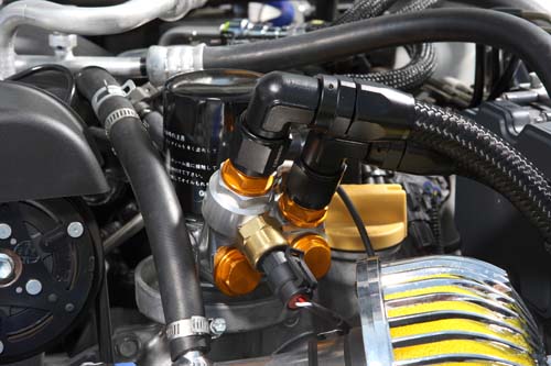 | 此機油冷卻器設計的相當精緻實用,除了可作為機油冷卻進出管道,還可外 加機油壓力、溫度感知器,一體多用性,讓人不禁讚佩日式精實作風! |