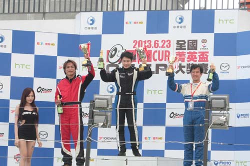 | GP1 2WD組冠軍林帛亨(中)、亞軍許智為(左)、季軍蔡維傑(右)。 |