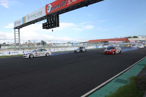 | 由於先前曾遇到的變速箱問題獲得了改善,這使得Extend Racing洪光台(11號)終於能夠發揮BMW 320i的戰力,並以第三名首度完成GP2賽事。 |