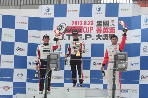 | GP2 B組冠軍楊孟樵(中)、亞軍袁聖評(左)、季軍馮仁稚(右)。 |