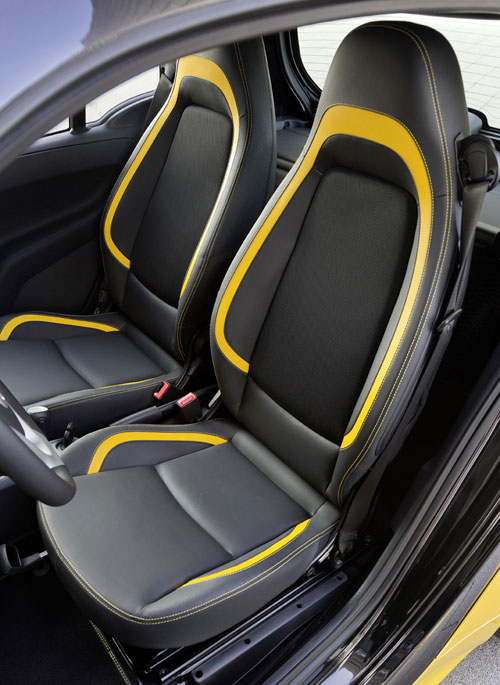 就是那道烈焰般的黃色光芒!smart fortwo edition cityflame一現身,就讓街道上所有大車小車相形失色!edition cityflame擁有超凡的英雄魅力,外觀車身與側裙是太陽般耀眼的專屬亮黃色烤漆,搭配超酷黑色tridion安全車架、黑色飛翼造型後照鏡,以及蜂巢狀進氣口、燻黑色水箱護罩框,連輪圈也是超殺的黑色,充分顯現動感個性;升級的 LED 日間行車燈,宛如英雄的慧眼,讓障礙無所遁形,提高行車安全;車身上的cityflame 徽飾更強化了 smart 限量意義,就像是英雄的榮耀徽章。絕對的黑與黃、絕對的自信,edition cityflame能量值和戰鬥力破表 ,誰與爭鋒!