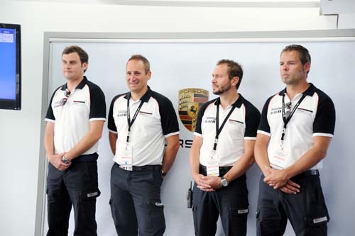 | 教練團隊來自德國原廠,他們的真實身份是測試車手與Porsche廠隊的培訓車手。 |