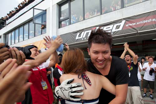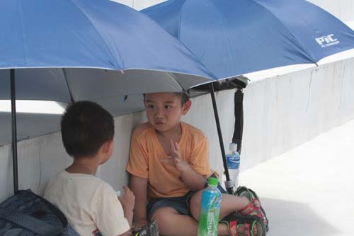 | 大人看賽車,我們小朋友撐傘、喝飲料、純聊天! |