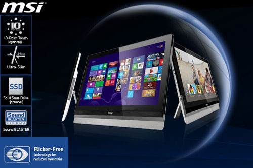 微星科技即日推出全新超薄All-in-One系列機種Adora24,為世界第一台使用螢幕不閃爍技術的All-in-One PC,機身最薄處僅21mm,機身處以錯位線條製造出視覺上的黃金比例,使Adora24更顯輕薄,而側身的流線,更帶出其俐落的速度感,除此之外Adora24採用Intel® 3rd Gen Mobile Core™ i3 / i5 多核心處理器,搭配上NVIDIA GeForce GT 740M頂級獨立顯示卡,不止搭載螢幕不閃爍技術,也提供抗眩光霧面螢幕,讓使用者能夠在長時間使用電腦的情況下充分享受到眼球無負擔的全新使用體驗。