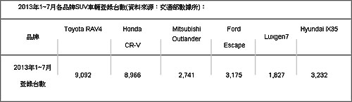 SUV爭冠戰雲密佈 TOYOTA RAV4環保標章認證暫領先