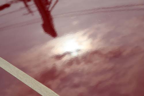 | 將車漆打上頂級晶鑽蠟後,發現原本的太陽紋幾乎都已撫平,且上蠟與推蠟的過程中皆相當省力,證明產品的效果確實明顯。 |