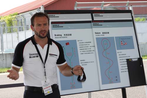 至於煞車課程(Braking)中學員們除了要了解踩死煞車ABS作用時的車輛反應,藉由防鎖死煞車系統(ABS)的適時介入,配合自動煞車力道分配系統(ABD)的作動也能有效閃避突發狀況。 |