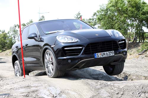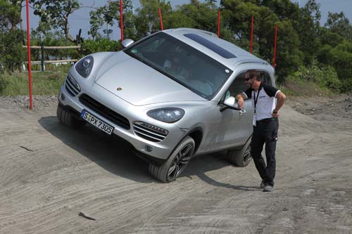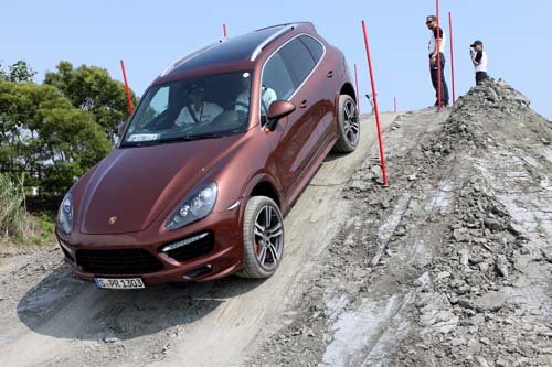 除了柏油路上的極限課程之外,自從保時捷推出稱霸一般道路(On-Road)與越野路面(Off-Road)Cayenne,強大的越野功能更是課程中必備的嶄新體驗,即使面對下降陡坡或者崎嶇路面上,高剛性Cayenne除了展現出優異車身結構設計強度外,透過教練輕鬆示範下原本懸空的前輪在保時捷全新循跡管理系統(PTM)、主動懸吊調整系統(PASM)與動態底盤控制系統輔助下,Cayenne輕鬆將空轉輪動力重新分配,不需任何高超駕馭技巧的幫助Cayenne即可展現出強大的越野能力,然而當重返柏油路面時明確而犀利的操控反應也是保時捷Cayenne必備的利器。