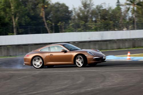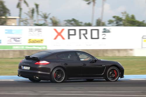 經過一整天正式課程練習結束後當然要來場模擬綜合路況的練習,在教練團精心規劃的綜合賽道中同時具備直線加速、高速彎、中速彎、低速彎、S型彎道等,每位學員可將先前課程中所學習的操控經驗發揮於此。一樣先由教練帶領學員試跑一圈後在由學員分別駕駛Carrera S、Cayman S與Panamera Turbo分別體會不同車型的駕馭樂趣,同時也跟隨著教練的正確賽道路線以快速學習。不過光是藉由封閉賽道來體驗駕馭樂趣似乎還是無法滿足學員的熱情,為此在場五位指導教練分別駕馭Cayman S、Carrera 2、Carrera 4、Cayman S與Panamera Turbo進行繞場極速「體驗」挑戰,藉由正確的路線選擇、油門拿捏與車身動態掌握上,即使教練團以誇張的滑胎方式過彎也能讓每位試乘活動的乘客能真實見識到保時捷引以為傲的操控極限。