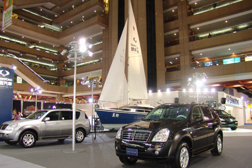 雙龍汽車自從2004年引進全台灣第一台柴油休旅車以來,品牌的核心精神一直著重在「唯一柴油休旅4×4的專業品牌」。而在2008年台北國際車展當中,雙龍汽車將展出柴油休旅的四大天王,包括全新上市的新世代休旅車New Kyron、頂級豪華休旅車Rexton II XVT、2.0柴油鋼砲Actyon、以及超級豪華MPV Stavic等柴油休旅車款。為了突顯雙龍汽車的品牌特性,會場佈置更結合了海洋、山林的情境,象徵著每一位雙龍汽車的車主,都是能夠「上山下海」的聰明玩家。