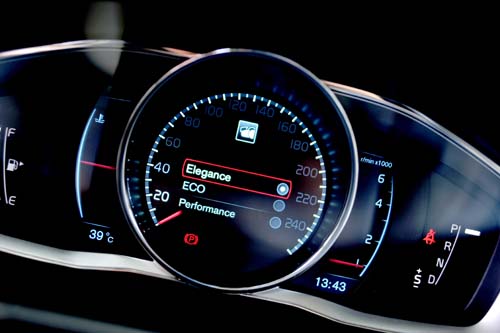 | 儀錶板更換成與V40相同樣式,具有Elegance、ECO、Performance等三種模式切換。 |