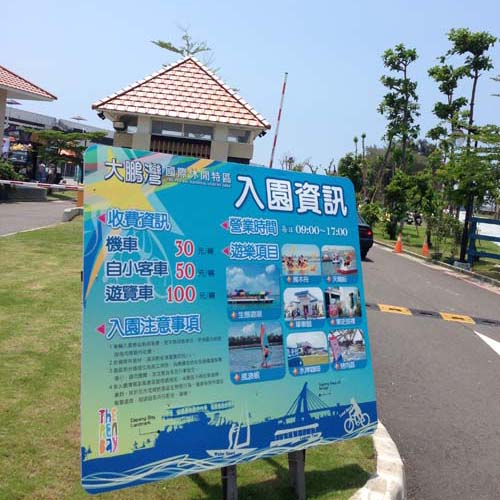 | 來到大鵬灣管理處後,步行約7分鐘即可抵達賽車場與水岸遊憩區入口。進入賽車場觀賞OTGP賽事需購買門票每張400元,若你只是要進入水岸遊憩區遊玩,則僅需支付50元清潔費。 |