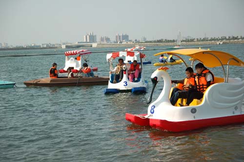 喜歡騎乘自行車的人來到這裡,可享受全長16.4公里的環灣道路,沿途欣賞引人入勝的潟湖景緻、大潭溼地公園等景觀、漁村風情、青洲濱海遊憩區與東港人文等,約需二小時可騎乘一周,當地單車館可提供各型自行車租賃服務,讓你暢遊大鵬灣環灣道路的騎乘樂趣。與賽車場同入口的水岸遊憩區更是建議各位來這裡逛逛!可搭乘大鵬灣遊湖船,伴著和煦陽光微風,欣賞特有的自然景觀。其他像是天鵝船、腳踏船與手划船,更是親子伴遊、情侶浪漫約會的首選喔。