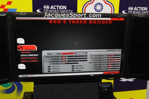 在筆者正式上了模擬器之後,首先熟悉操作上的基本配置,從換檔撥片、踏板、離合器、到一些賽車才有的啟動按鈕等,都與實際賽車配置相同,當天的設定車種為Audi R8 GT3,在模擬中此車算是相當敏感,只要動作過大或是油門、煞車操作不夠線性,都會使得車身失去循跡能力,當天就有許多前來體驗的參賽者因為滑出賽道,或是車輛撞擊毀損後無法完賽,這樣就失去資格了。如果在正式考照中則必須由PIT BOX出發並先進行一圈暖胎,並依照指示通過起跑線正式進行測時,並以低於2分24秒的時間通過測時後,再繞行一圈回到PIT Entry,全程無誤才算合格。