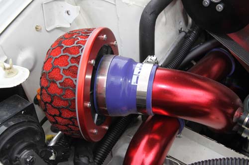 | 由於葉片式機械增壓器在壓縮空氣時會產生熱量,因此類似的套件都會包含進氣冷卻器裝置,若不打開以擎蓋還以為這是輛渦輪車。 |