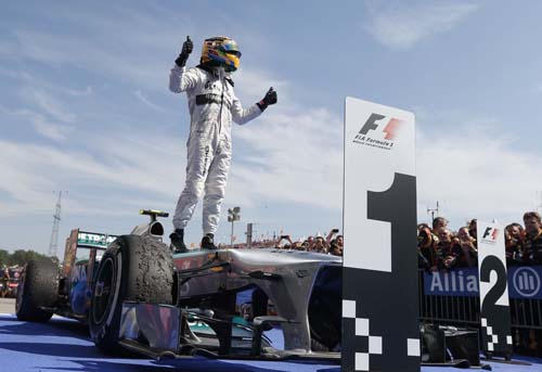 Hamilton坦言:「簽約Mercedes之時,根本沒想到今年能有勝場。」但在開季之後,眼看Mercedes賽車本身性能令人刮目相看,他在第2和第3站已經都上了頒獎台,此時應該開始有了希望,但是隊友Rosberg今年第一次上頒獎台就是在摩納哥的優勝、僅隔一站又在英國獲勝(所以Rosberg今年目前的兩次頒獎台都是勝場),儘管Hamilton依然因為穩定性而積分較高,卻也依然差個優勝來替他「錦上添花」,如今這一勝,讓他再也沒有任何鋒芒會被隊友蓋過之虞。開季前Brawn聲稱該隊擁有最強的車手組合,這個論點儘管從目前的積分上還無法驗證(Hamilton輸給Vettel,Rosberg輸給Mark Webber──固然也要考量到與Red Bull賽車實力的差距),但如同本文標題所言,Mercedes成了今年首支「雙勝」(此指兩名車手均已有勝場)的車隊!說爭冠當然還太遠,但他們的車隊積分從開季的第4位,到第7站超過Lotus、再到第8站超過Ferrari,明顯的進步讓他們坐上車隊第2,關鍵在於那兩隊各有一名車手成績太差。過去的Mercedes,是Rosberg連續三年擊敗Michael Schumacher,今年則是他的積分一路落後Hamilton,雖然先拿下兩勝以維持存在感(追近到剩7分),但如今Hamilton也勝了(又被拉開到40分),Mercedes隊內的重心有可能更加速傾斜(其實應該前三年就是斜的:從來不在Rosberg身上)──他的F1資歷還多Hamilton一年,絕不甘心繼續受冷落──儘管前後兩名隊友都是世界冠軍。王以平