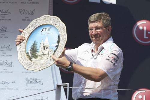 | Mercedes領隊R.Brawn可以得意的是,他們是今年第一支兩名車手均獲勝的車隊。 |
