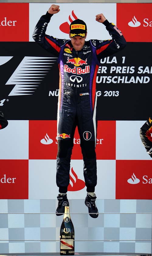 倘若比賽再多一兩圈,英國站的優勝者就極可能是Webber,但這對Rosberg來說並不算運氣因素,畢竟總圈數在比賽之前就決定好了,Rosberg的運氣在於:第一,他沒有遇上本站令Pirelli成為眾矢之的的爆胎問題;第二,整場比賽從第1圈開始到Vettel掛點而引起的全場黃旗緩行之前,他都不必看後視鏡(儘管終盤他的後視鏡被Webber填滿了);第三,當然就是Vettel的自滅──這樣說來,Rosberg這一勝都是運氣使然?這樣講,對Mercedes的努力(也還要再提醒一次:多少也包括私人測試)當然不盡公平:加拿大站,Mercedes還只是撐得比較久,但在英國站,Mercedes則是可以撐到底了,看因爆胎而一度落至墊底(比Webber還慘)的Hamilton最後也追到第4名,若換成私人測試之前的Mercedes(這算提醒第三次囉?),守住現有順位都很煎熬了,更何況這樣瘋狂進攻?Mercedes總算是守得雲開(私人測試:第四次提醒)見明月了?到了德國站,Pirelli因應爆胎的緊急措施之一是把輪胎的簾布層材質從鋼帶改回去年用的功夫龍,續奪竿位的Hamilton由於起跑時太在乎阻擋,結果反而被兩部Red Bull一起料理掉,終場更只拿到第5名;Rosberg則因車隊的失誤而意外在排位賽第2回合被淘汰(起跑第11),決賽結果也只提昇兩位──好不容易(因為私人測試:我不再算第幾次提醒了)看見了輪胎的曙光,這麼個變局,又把Mercedes打回原形?我想……還是讓我們繼續看下去吧!王以平