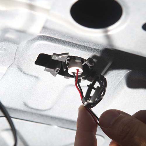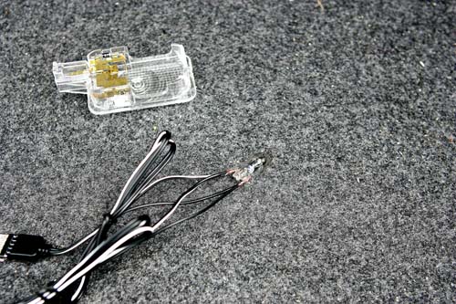| 作業要點1:每一種車款的行李箱設計位置、燈座型式都不盡相同,但大多都為T10炸彈燈泡規格為主,對於這樣的規格型式,其實相當便利於DIY改裝操作,可以已經燒損無法使用的燈泡接線使用,重點記得線路要做好絕緣處理,不要發生線路短路便可 |