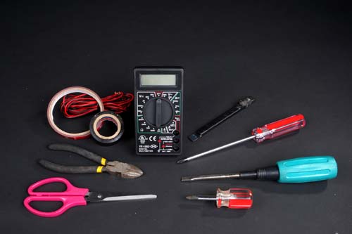 | 使用工具:平口、十字螺絲起子、剪刀、斜口鉗、雙面膠、絕緣膠帶、電線、三用電錶、撬棒。(依車型不同,所使用工具也有所不同,此僅供參考) |