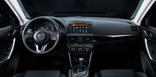 CX-5 SKYACTIV-D車型以魂動美型的流線外觀,搭配225/55R19的大尺寸輪圈,散發強烈的性能SUV氣勢。全車系配備整合式八吋DVD影音導航系統,具備DVD播放、倒車顯影、GPS衛星導航(內建陀螺儀、軌跡記錄等功能)還可接受藍牙、USB、MicroSD、iPod介面影音播放操作,及手機藍牙連接匯流免持功能。是同級等級最高的車內影音系統之一。除此之外CX-5還配備左右獨立恆溫空調、方向盤音響/定速巡航控制介面、光感應HID頭燈(含日行燈)、雨滴感應雨刷、智慧型車電腦,駕駛座八向電動調整、Karakuri捲軸式行李箱遮板、4:2:4 Karakuri分離可折式後座椅、2.0 4WD以上車型還配備電動天窗、Smart keyless智慧感應啟閉裝置,不僅安全規格領先同級,其他配備等級也媲美LSUV豪華休旅車款。
