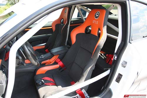 在底盤方面,Silverstone Clubsport 20吋鍛造鋁圈配上前255/30ZR20與295/25ZR20 Michelin Pilot Sport輪胎,對應兩側向外延伸達100mm的寬體始得車輛過彎穩定性大幅提升。內裝也為輕量化而將前面兩張電動座椅拆除,換上兩張碳纖維桶型座椅,這一換之後就少掉24kg的重量,配合後座全部拆除並升級G-Power內裝套件更有Completed Car的感覺。