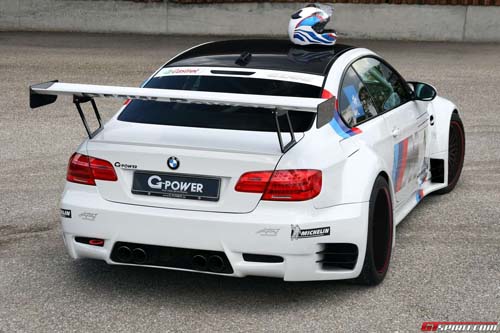 隨著BMW宣布4系列將正式取代現行雙門3系列車款後,這也代表3系列最高性能等級的M3也將走入歷史,為了紀念末代款M3,改裝大廠G Power特別推出M3 GT2 R版本,藉由寬體空力外觀、超過700hp動力輸出加上1500公斤不到的車重以有效達到最終目標。首先採用全碳纖維材質所打造的GT2 R外觀,包含前後保桿、下擾流、側裙與大型尾翼,有效提高車輛下壓力同時達到減輕重量,針對引擎蓋方面則是利用大型導風孔以幫助引擎室熱氣能夠快速導出,以維持引擎與冷卻系統的運作效能。